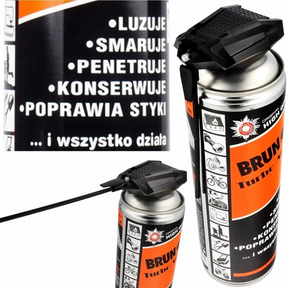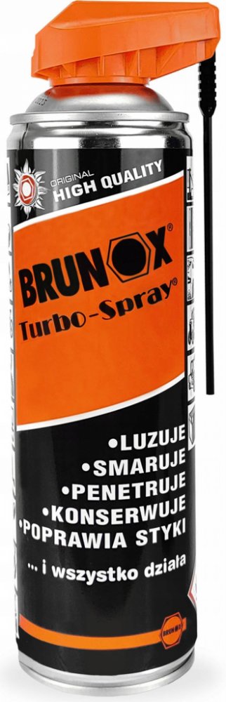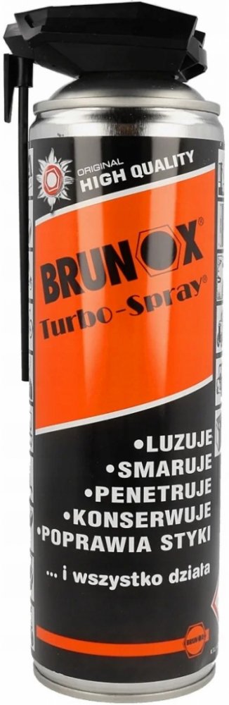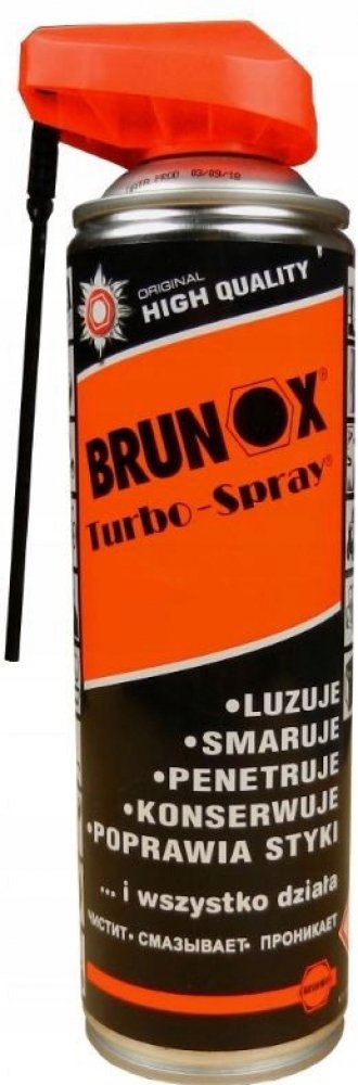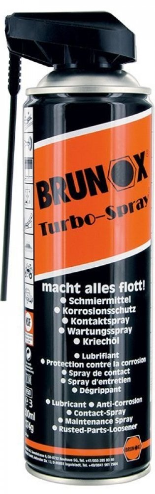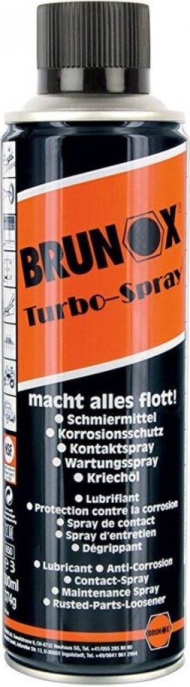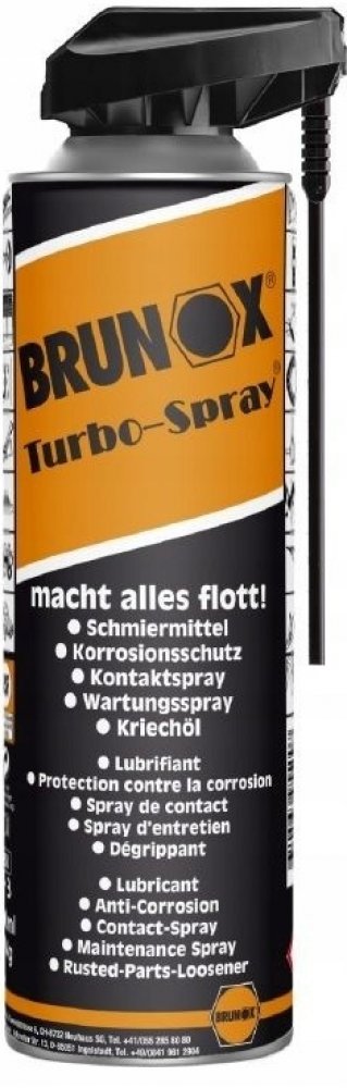 Brunox Turbo Spray – antikorozní, mazací, čistící a konzervační prostředek na bázi uhlovodanů s aditivem Turboline. Má výtečnou viskozitu, dokáže proniknout do jemných vlasových trhlin a povolí například pevně zatažený šroub. Zaručuje plnou ochranu před korozí stejně jako konzervování dutin. Odpovídající směs uhlovodanů zajišťuje jak souvislý ochranný film, tak i nutnou tloušťku vrstvy. Uvolní min...