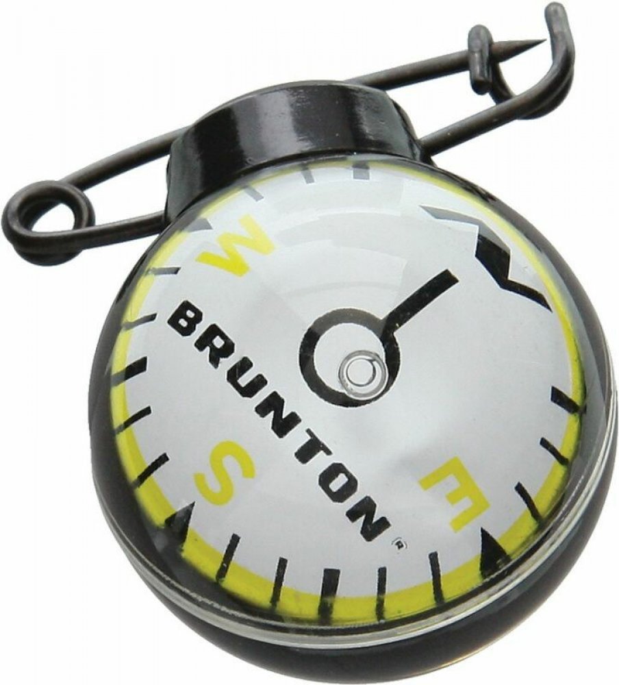 Kompas od firmy Brunton. Klip na připnutí k výstroji nebo oblečení umožňuje odečítání směru bez nutnosti použití rukou. Kompas ukazuje směr pod jakýmkoli úhlem. Zvýrazněné hlavní světové strany.