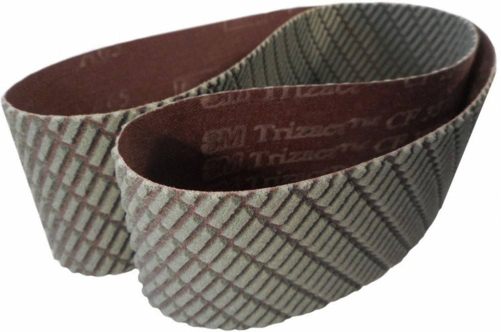 Brusný pás pro dokončování a leštění povrchů. 3M Trizact 337DC byl speciálně navržen pro dokončování povrchů materiálů náročných na opracování jako je titan, kobalt, nerezová ocel a veškeré slitiny používané v leteckém a zdravotnickém odvětví. Velmi efektivní je také při dokončovacích operacích na uhlíkové oceli, neželezných kovech a kalených materiálech. Brusná pole obsahují více vrstev abrazivního materiálu, mezery mezi nimi slouží jako kanálky pro odvod třísek a udržují tak broušenou plochu neustále čistou a chladnou.