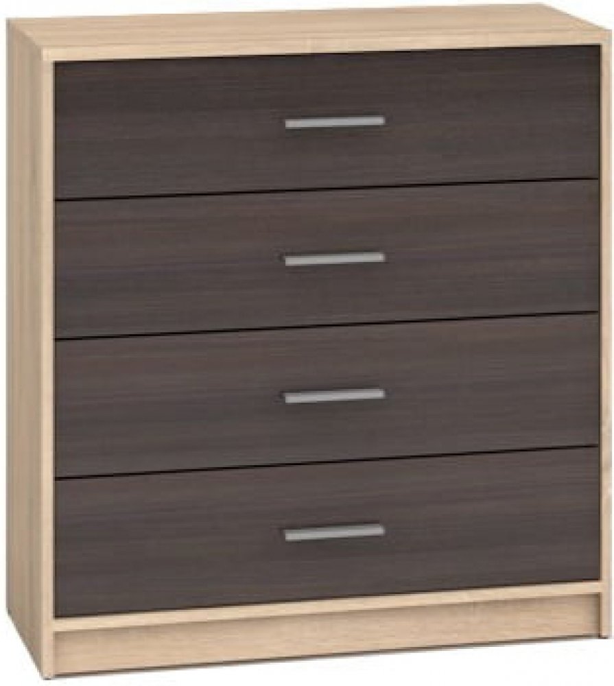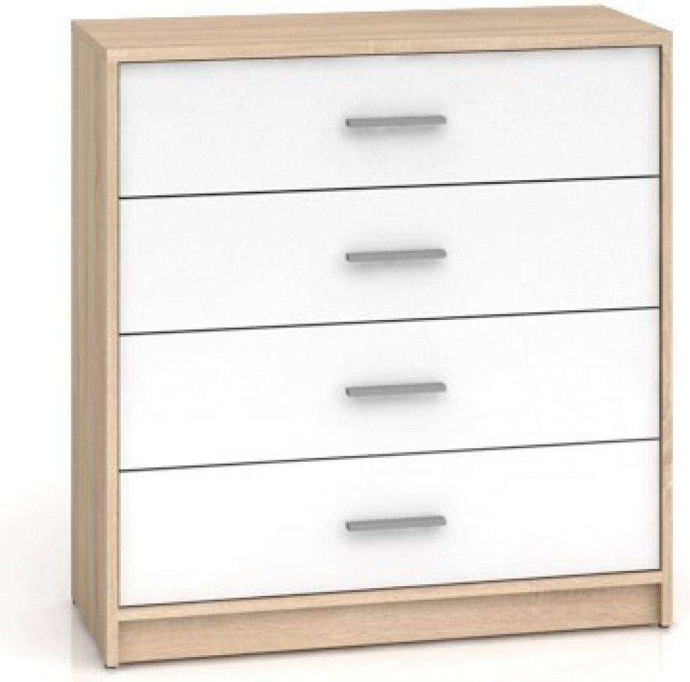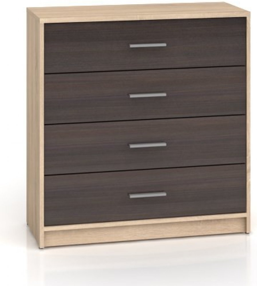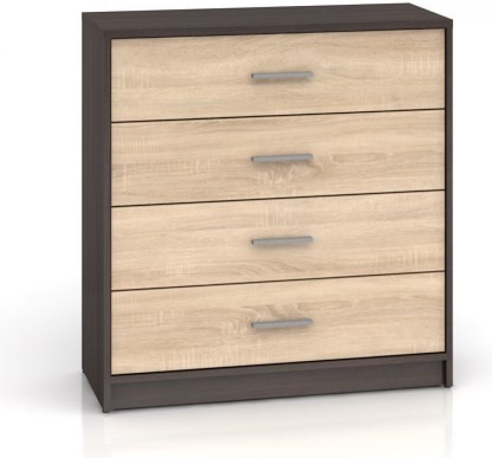 Komoda Nepo KOM4S je v barevném provedení Wenge. Obsahuje 4 zásuvky na válečkových kolejničkách. Dodáváno v demontu. Montáž je s pomocí přiloženého návodu jednoduchá. Sektorový nábytek Nepo představuje ideální kombinaci moderního designu s praktičnosti. Z jednotlivých prvků, jako jsou například regály, TV stolky, stoly, skříňky na boty a postel, lze prakticky a moderně zařídit kancelář, předsíň, obývací nebo dětský pokoj. Nepo se vyrábí ve třech základních barvách: bílá, wenge, dub sonoma. Navíc je možné objednat všechny komponenty v kombinacích těchto barev.