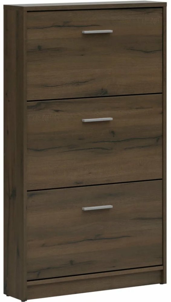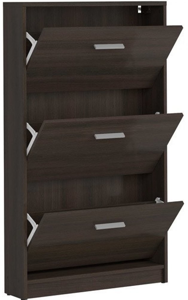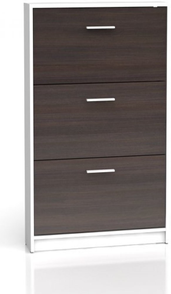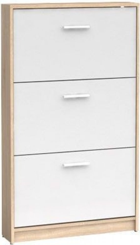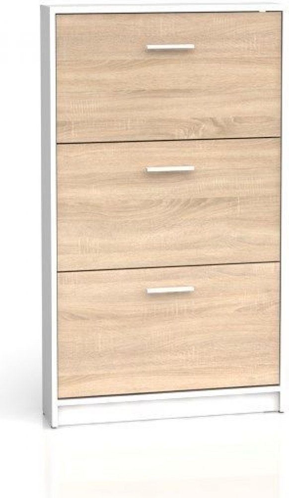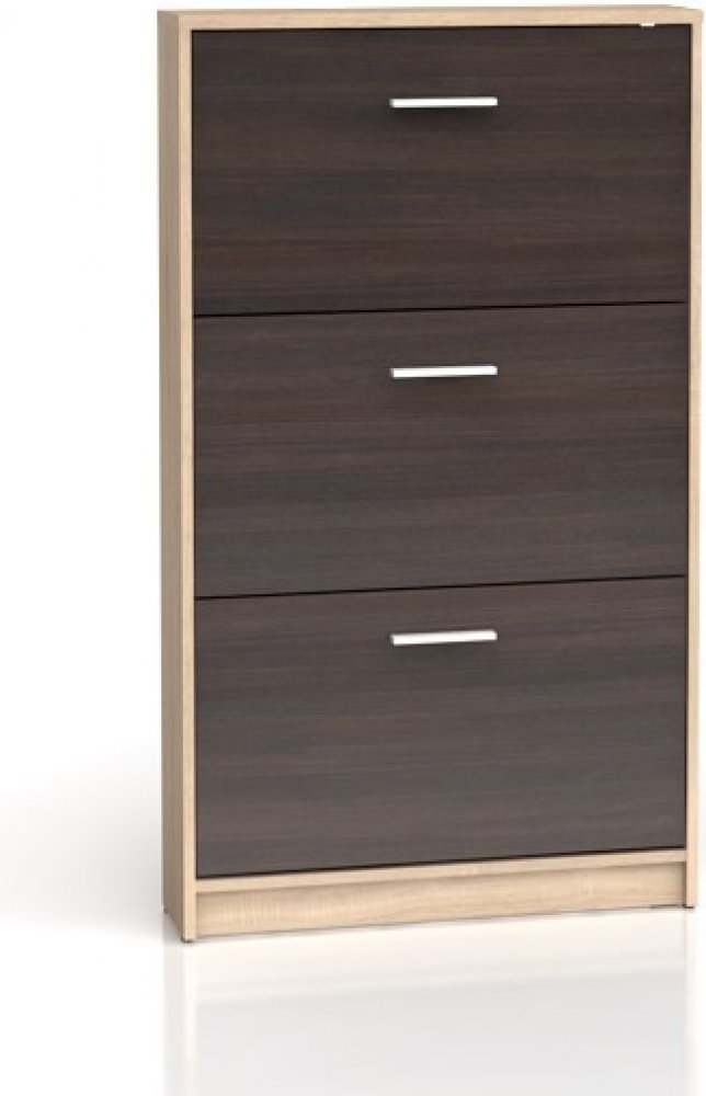 Provedení: Vysoký, úzký výklopný botník Nepo SFB3K je vyroben z dřevotřísky. Každý výklop má jednořadý prostor pro uložení bot. Snadná montáž.