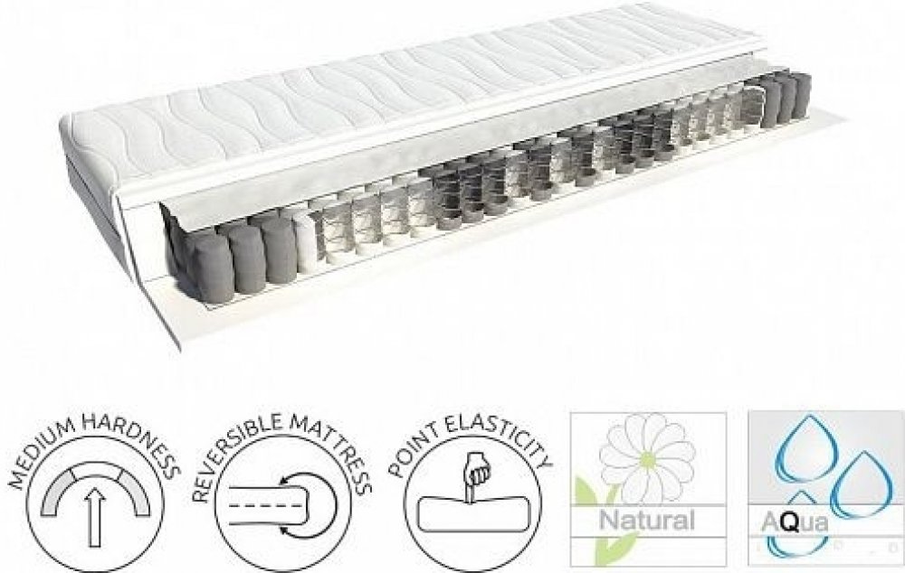 Taštičkové pružiny zajištují dokonalé kopírování těla a skvěle se přizpůsobují všem polohám při spánku. Velkou výhodou taštičkového jádra je také vysoká vzdušnost a odvod vlhkosti. Ložné plochy matrace jsou hladké, rovné z obou stran stejné.