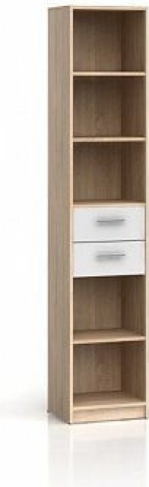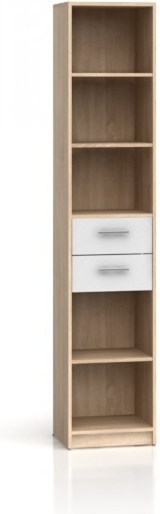 V každém dětském pokoji či pracovně oceníte mnoho úložného prostoru pro všechny nezbytnosti. Praktický regál Nepo Plus REG2S/40 je ideálním řešením. Vyrobený je z lamina o síle 1,6 cm v trendy kombinaci dekoru Dub sonoma a Bílá mat . Nabídne Vám mnoho odkládacího prostoru formou čtyř polic o rozměrech š. 36 x h. 31 cm a dvou zásuvek s úložným prostorem o rozměrech š. 33 x h. 29 x v. 10 cm. Výška mezi jednotlivými policemi je přibližně 30 cm. Snadnou manipulaci se zásuvkami zajišťují kovové pojezdy a stříbrné úchytky z tvrzeného plastu. Regál Nepo Plus můžete doplnit také o další prvky ze stejné nábytkové řady Nepo Plus. Naleznete zde mnoho dalších produktů, díky kterým rychle a jednoduše zařídíte svůj byt. Montáž je snadná, dle přiloženého montážního návodu. Dodáváno v demontu. Počet balíků: 2 bal. Rozměr balení: balík 1: d. 202 x š. 34 x v. 7 cm balík 2: d. 38 x š. 17 x v. 4 cm