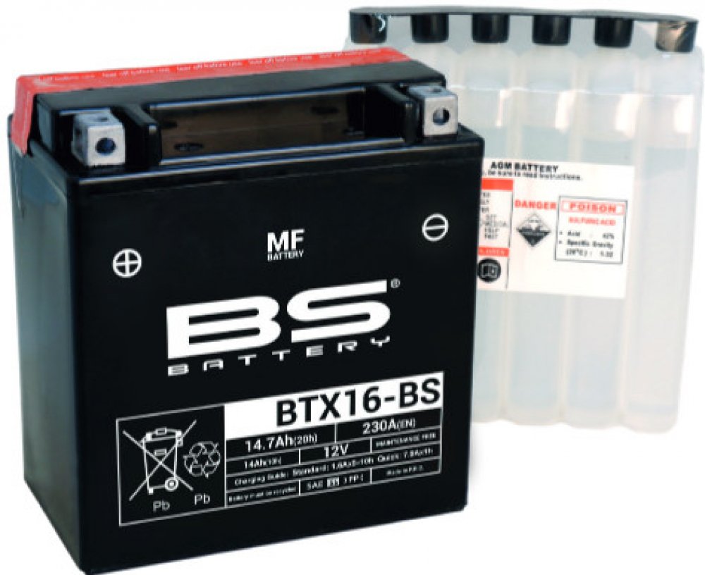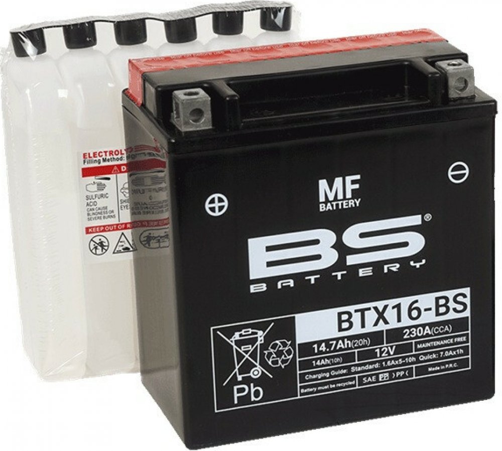 Baterie BTX16-BS je součástí naší bezúdržbové MF řady. Tato 12V 14.7Ah baterie se dodává s balením elektrolytu (kyseliny) a před prvním použitím je nutné ji aktivovat nalitím kyseliny.