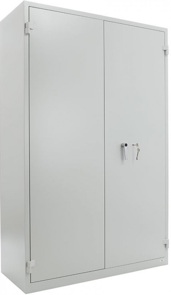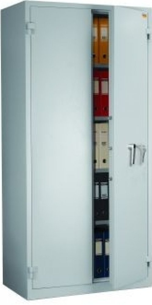 zamykání skříně na klíč-nejlepší cena v této třídě Dvouplášťová trezorová skříň IGNIS 1950 pro ukladání dokumentů s protipožární ochranou 30 min. na papírové dokumenty se zamykáním na trezorový klíč. PP ochrana dle normy GOST R50862, třída bezpečnosti S2 dle EN-14450. Úhel otevírání dveří 180°. Uvnitř trezoru se nacházejí 4 police. Nejlepší cena v této třídě.