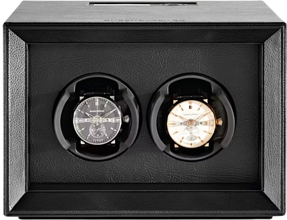 Natahovač hodinek Buben & Zorweg Safe Master 2 Black představuje elegantní a funkční řešení pro bezpečné uložení až dvou automatických hodinek. Jeho kompaktní tělo je potaženo luxusní černou kůží, která dodává přístroji nadčasový a sofistikovaný vzhled. Minimalistický design s precizním zpracováním umožňuje umístění jak v moderním interiéru, tak i v trezoru, kde působí jako stylový a praktický doplněk.Uvnitř je integrován pokročilý systém TIME MOVER®, který umožňuje plně programovatelné nastavení otáček (650–1 800 za den), směru rotace i „spánkového“ režimu, čímž zajišťuje optimální péči o vaše hodinky. Díky německé preciznosti, prvotřídním materiálům a důrazu na detail je Buben & Zorweg Safe Master 2 Black symbolem diskrétního luxusu, technické dokonalosti a estetické harmonie, ideálním pro náročné sběratele i milovníky hodinářského umění.