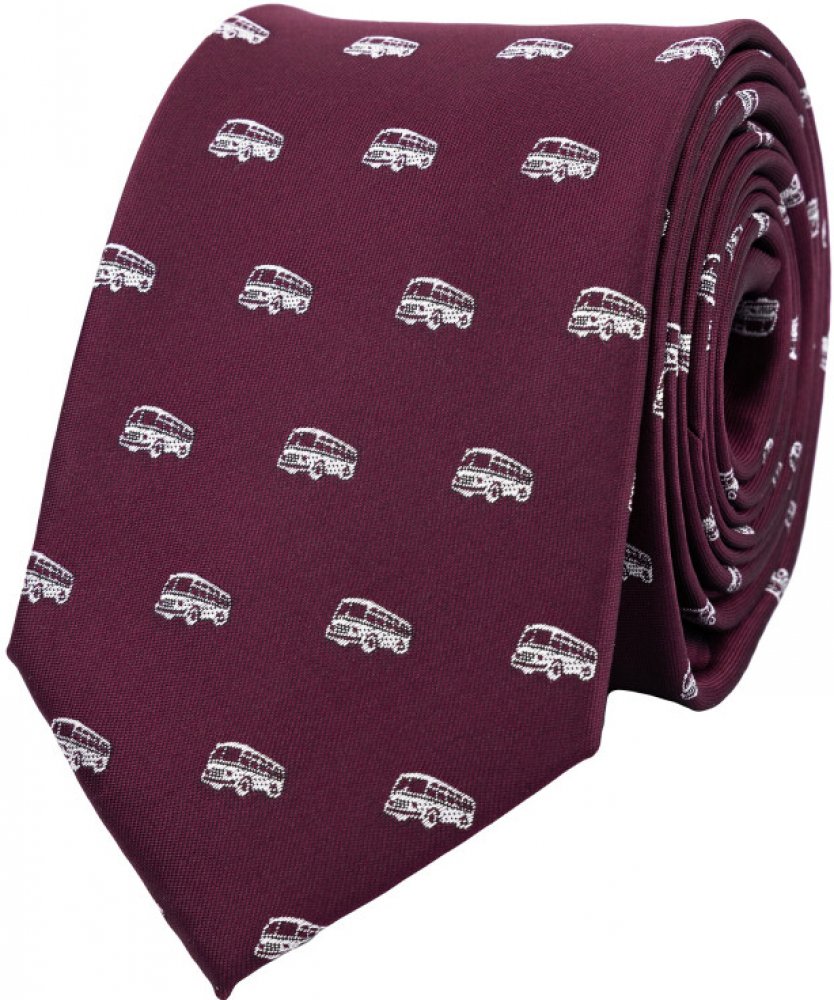 Stylová vínová kravata s jemným vytkaným motivem retro autobusu potěší každého milovníka originality a nostalgického designu. Skvělá volba pro nevšední outfit s nápadem – elegantní, a přitom hravá. Perfektní dárek pro fanoušky veteránů, řidiče, cestovatele i všechny, kdo mají slabost pro retro styl a jedinečné doplňky. Hodí se na společenské akce, firemní večírky, tematické události i jako origin...