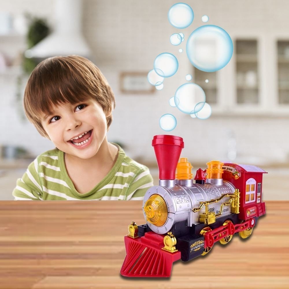 Bublinkovou mašinku si zamilují holčičky i kluci. Krásná, veselá interaktivní hračka pro malé i velké. Mašinka jezdí, houká, bliká a po nalití bublifuku do komínu vytváří během jízdy bublinky. Pokud mašinka při jízdě do něčeho narazí, otočí se a jede vesele dál. Tato veselá podívaná se bude líbit holčičkám i klukům a mašinka se rázem stane jednou z jejich nejoblíbenějších hraček.