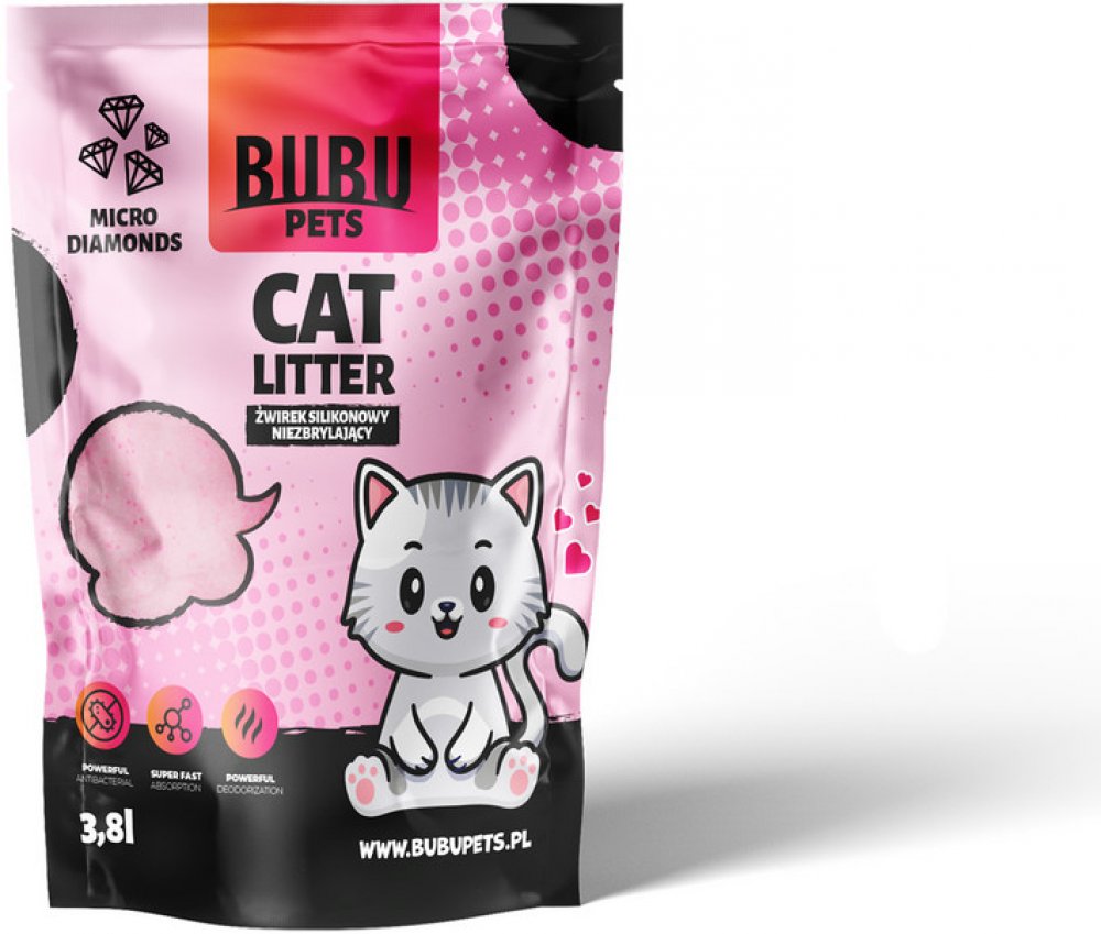 BUBU PETS je nejšetrnější ke kočkám a jejich majitelům nehrudkující silikonové stelivo. Okamžitě absorbuje tekutinu a okamžitě pohlcuje nepříjemný zápach. Navíc díky němu bude udržování čistoty v domácnosti extrémně snadné.