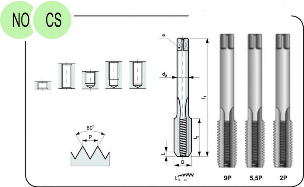 Prosím prozor při objednávání stupňů závitníku! Lze vybrat č.:1, č.:2, č.:3 a sada. Materiál: nástrojová ocel NO Provedení: nebroušený závit Lícování: 2B Použití: pro opravu a výrobu několika kusů závitů ZÁVITNÍK: č.l předřezávací č.ll střední č.lll dokončovací D z/1' P l 1 l 2 d 2 a * 4 40 0,635 48 11 3,15 2,5 2,3 3 5 40 0,635 48 11 3,15 2,5 2,6 3 6 32 0,794 50 13 3,55 2,8 2,85 3 8 32 0,794 53 13...