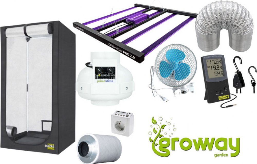 BudBox PRO XL 120x120x200 bílý - pěstební stanLumatek ZEUS 465W PRO 2.9 - pěstební LED osvětleníGENT ECco 100mm, 280m3/h, ventilátor s EC motorem a regulacíGSE regulátor pro EC ventilátoryPrima Klima Industry filter K1602 125mm, 280 m3/h, pachový filtrCombiflex - zpevněné ventilační potrubí 100 mm (1 m) 5xStahovací páska do 135 mm 3xRope Ratchet GEAR 2ks závěsný systém, nosnost 68...