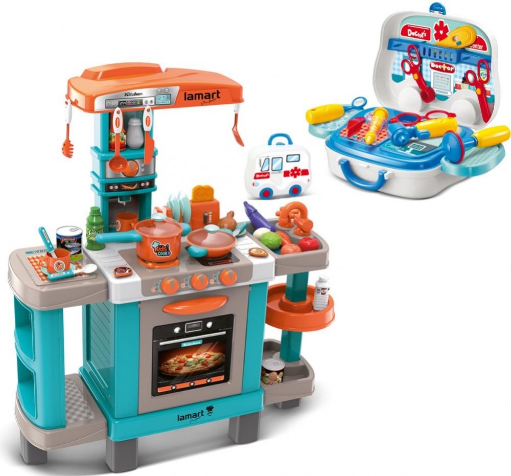 Jedna z plotýnek je vybavena zvukovým a světelným efektem se „zvukem vaření" - napájeno 2x AA bateriemi (nejsou součástí balení). Dalším skvělým doplňkem kuchyňky je integrovaný kávovar na kapsle a toustovač s odkapávačem na nádobí. Dřez je doplněn otočným vodovodním kohoutkem.