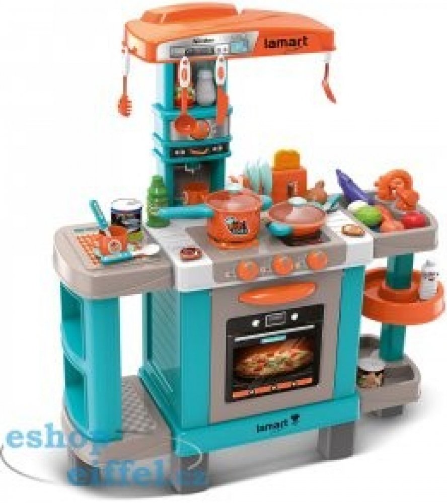 Dětská kuchyňka Joly Grand nabízí skvělou zábavu v prostorné a plně vybavené kuchyňce. Kuchyňka má stabilní a kvalitní plastovou konstrukci, integrovanou digestoř s háčky na zavěšení kuchyňského náčiní, 2 varné plotýnky a otevírací troubu na pečení. Otočný regulátor teploty je doplněn mechanickým zvukem.