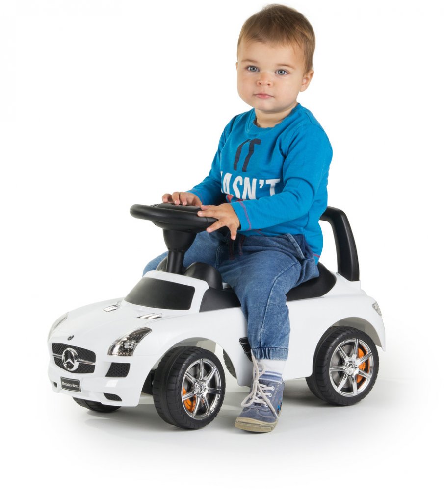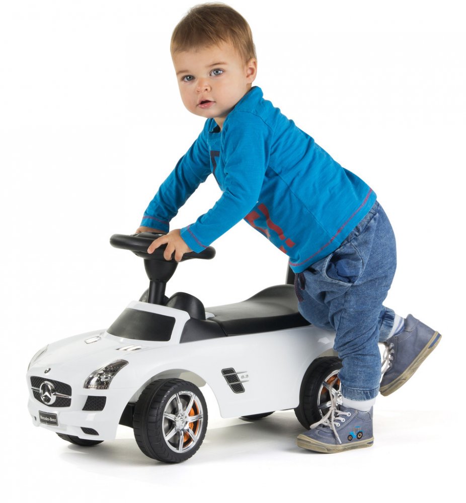 Chcete, aby mělo vaše dítě jedinečné odrážedlo, za kterým se budou ostatní děti a rodiče otáčet? Pak mu pořiďte odráželo Mercedes-Benz SLS. Jedná se zmenšenou kopii opravdového sportovního auta. Dítě ocení dostatečně dostatečné velký úložný prostor pod sedátkem, kam si může dát svoje oblíbené hračky.