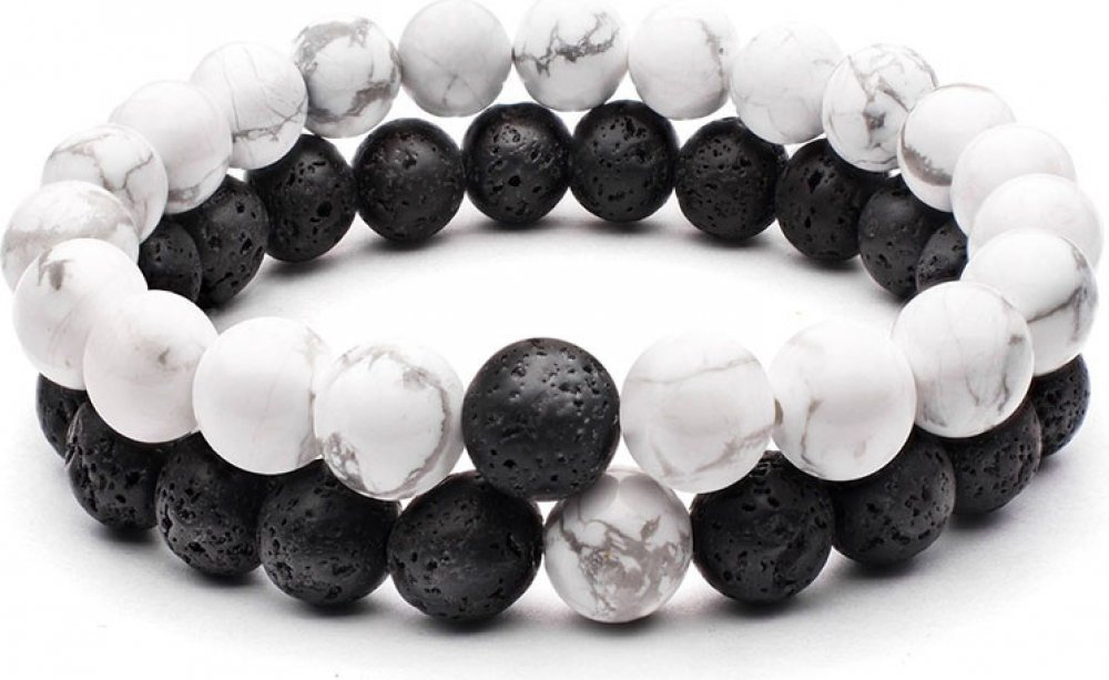 Dva náramky. Dva protiklady. Jedno dokonale sladěné souznění. Tenhle duo set z bílého howlitu a černého lávového kamene je jako vy dva – rozdílní, ale neoddělitelní.