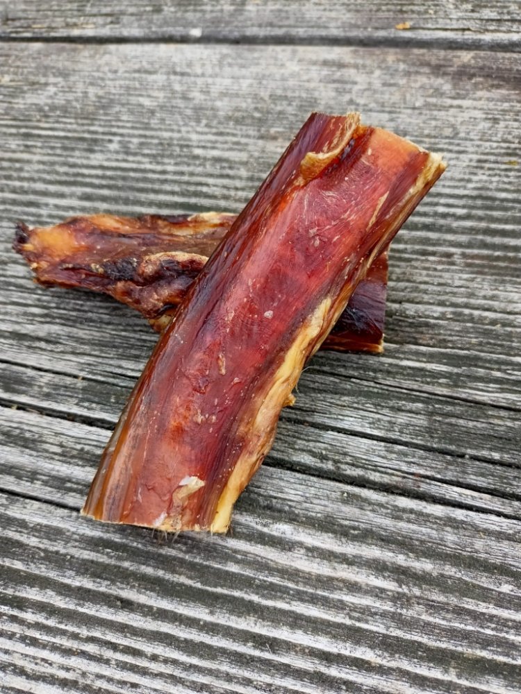 Složení: 100% hovězí býkovec Sušená pochoutka se specifickou vůní a chutí.Vyšší obsah proteinu a kolagenu.Čistí zuby, posiluje dásně a žvýkací svaly.Bez konzervantů, barviv, dochucovadel a glycerinu.Podávejte pod dozorem a vždy zajistěte zvířeti přístup k pitné vodě.Jedná se o doplněk stravy. Uchovávejte v suchu a chladu.Minimální trvanlivost při správném skladování je 6 měsíců od doručení.Naše výrobky jsou 100% přírodní. Vše si sami sušíme a každý kousek nám projde rukama. Vše je pečlivě tříděno a vybíráno tak, aby produkt odpovídal nabízené kvalitě.Uvedená cena je za kus.