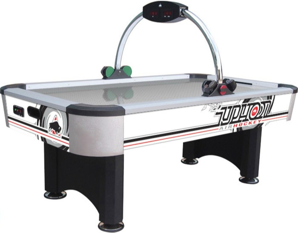 Robustní air hokej Buffalo Typhoon 7ft s nerezovou plochou, 2 motory a LED skóre – ideální pro domácí zápasy 1v1 i 2v2. Buffalo Typhoon 7ft – Profesionální air hokejový stůl s nerezovým hřištěm a výkonem pro domácí šampionyBuffalo Typhoon je kvalitní 7ft air hokejový stůl navržený pro maximální zábavu a dlouhou životnost. Vyznačuje se nerezovou hrací plochou, dvěma výkonnými motory a elektronickým počítadlem skóre. Ideální pro soutěživé duše, rodiny a partičky přátel, které hledají zábavnou a aktivní hru do interiéru.Klíčové výhody:Nerezové herní pole – výjimečně hladký skluz puku a vysoká odolnost2 výkonné motory – stabilní a rovnoměrný proud vzduchuExtra velká hrací plocha – perfektní pro hru ve dvojicích (2 vs 2)Elektronický počítač skóre s nastavitelnou hlasitostíVýškově nastavitelné nohy pro vyrovnání i na nerovném povrchuElegantní vzhled a stabilní konstrukce – vhodné i do moderní kancelářeKompletní sada příslušenství – 4 pálky a 4 puky v baleníTechnické specifikace:Rozměry stolu: cca 215 × 122,5 × 81 cmVýška s obloukem: cca 150,5 cmRozměry hřiště: cca 194 × 102,5 cmHmotnost: 103 kgNapájení: 220 V, spotřeba 2× 45 WProč si Buffalo Typhoon zamilujete?Nejenže nabízí výjimečně hladkou hru a přesné skórování, ale také podporuje rozvoj reflexů a týmové spolupráce. Je to ideální způsob, jak trávit čas aktivně a zábavně – bez potřeby opustit domov.Neváhejte – Buffalo Typhoon 7ft promění každý večer v soutěžní turnaj plný radosti a smíchu. Objednejte nyní a přineste si kousek herního světa do své domácnosti!