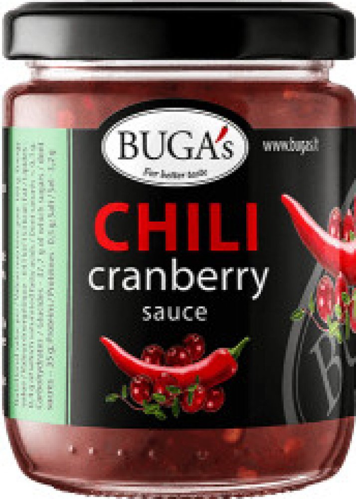 Složení: brusinka 33%, cukr, čili paprika 28%, sůl, regulátor kyselosti: kyselina citronová, zahušťovadlo: xanthanová guma, konzervační látky: sorbát draselný. Výrobek