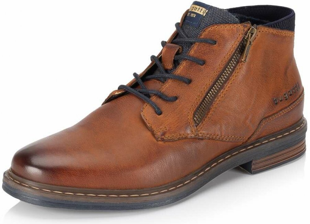 Kožená pánská obuv BUGATTI představuje ideální spojení moderního vzhledu a pohodlí. Svršek z hladké přírodní usně v hnědém provedení doplňují působivé textilní prvky a logo značky, které podtrhuje precizní zpracování značky BUGATTI. Obouvání usnadní zip a šněrovaní poskytuje dokonalou úpravu dle individuálních požadavků každého z Vás. Uvnitř na vás čeká měkká stélka, která poskytuje pohodlí a podporu při každém kroku – ideální pro celodenní nošení. Pokud hledáte stylovou a pohodlnou obuv, tento model je perfektní volbou. Skvěle se hodí jak k ležérnímu outfitu, tak i do práce k elegantnějšímu oblečení, a stane se tak praktickým i módním doplňkem vašeho botníku.