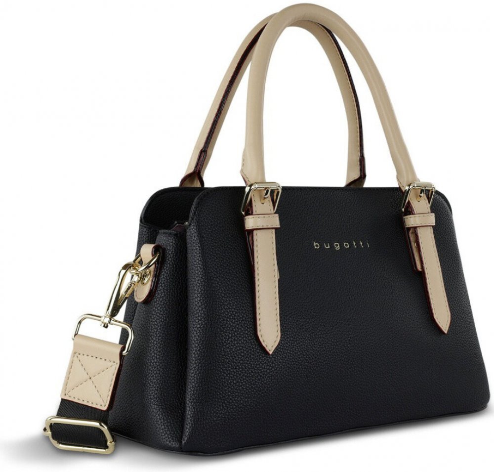 Stylová taška pro úspěšné dámy od luxusní značky Bugatti v oblíbené černé barvě v kombinaci se světlými doplňky z linie Ella. Tato moderní taška je promyšleným designovým konceptem a společníkem pro váš dynamický životní styl. Taška je vhodná pro každodenní nošení do práce, za kulturou nebo i jinam do společnosti. Je dostatečně prostorná se třemi sekcemi pro snadné hledání věcí v kabelce a díky pr...