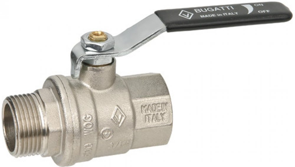 Kulový kohout plnoprůtokový. Vysoce kvalitní kulový kohout ze série OREGON předního italského výrobce BUGATTI je vyrobený z prvotřídní poniklované mosazi CW617N, která zajišťuje dlouhotrvající spolehlivost a odolnost vůči korozi. Kulový kohout je opatřen teflonovou ucpávkou a navíc "O" kroužkem (VITON)