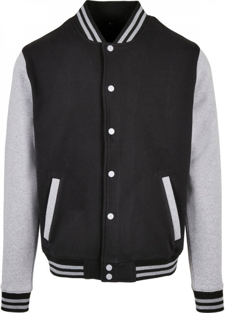 College bunda Vsazené rukávy v kontrastní barvě, patentky v kontrastní barvě, 2 boční kapsy, žebrovaný límec a manžety s kontrastními pruhy, uvnitř počesaná, neutrální velikostní štítek, pratelné na 30°, nelze sušit v sušičce, nelze chemicky čistit. Materiál: 330g/m², 80% bavlna, 20% polyester