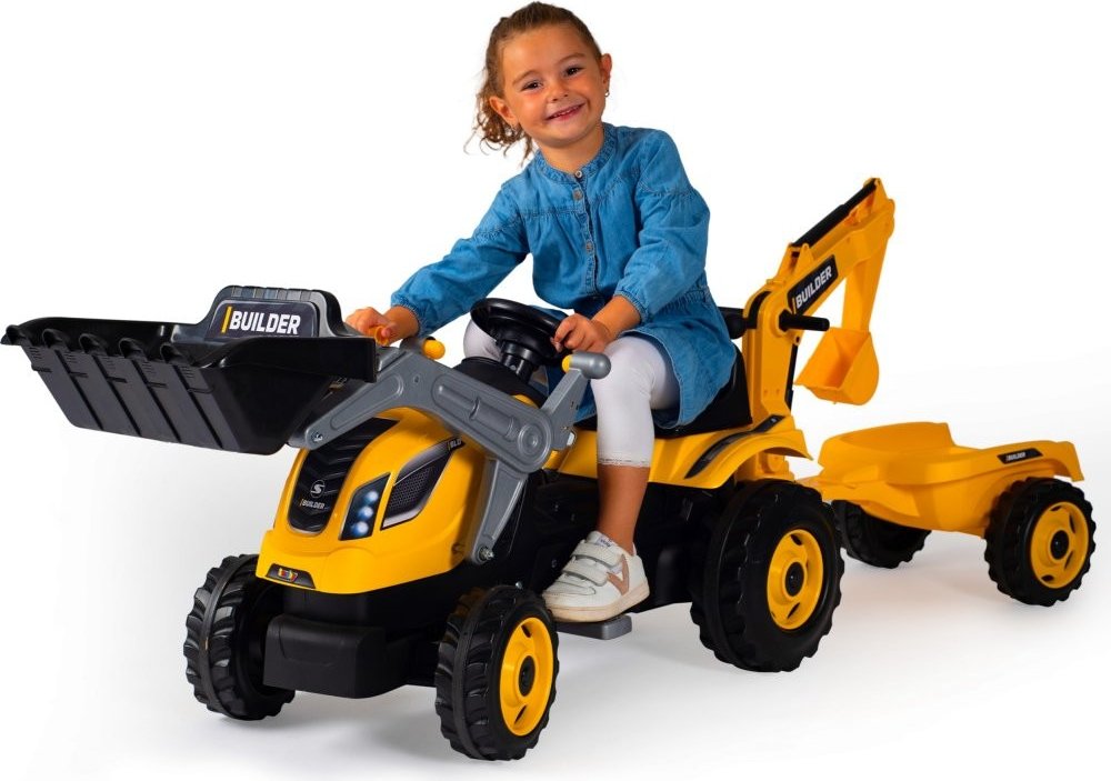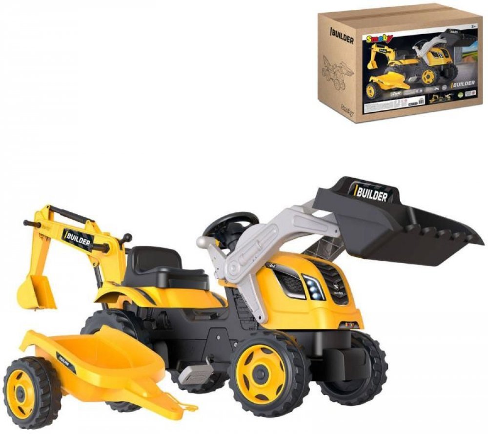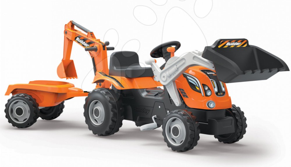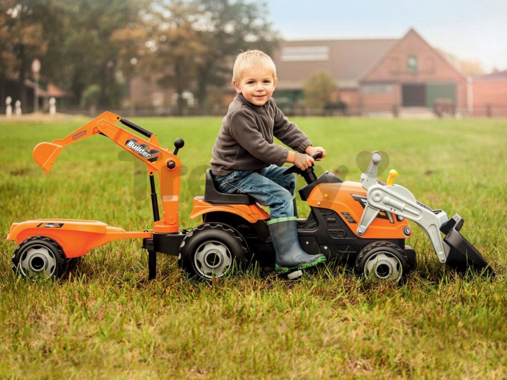 Builder Max Šlapací traktor s bagrem a vozíkem oranžový