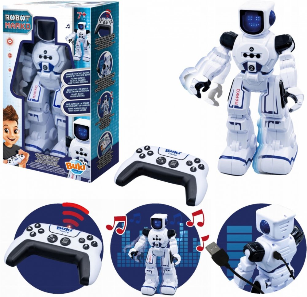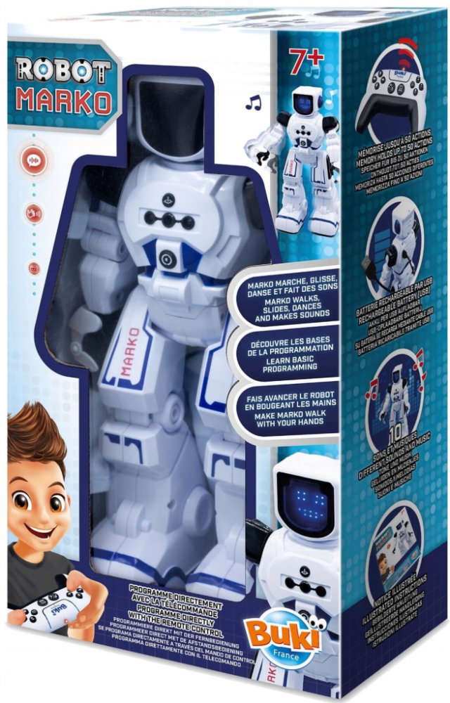 - Robota Marko (nabíjecí baterie 3,7V je součástí)- Dálkové ovládání (2x AAA 1,5V baterie - nejsou součástí)- USB nabíjecí kabel- Originální návod s českým překladem