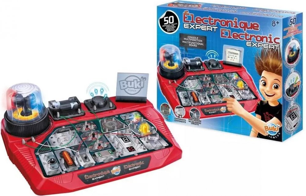 Dětský elektronický pult umožňuje tvorbu elektrických obvodů s různými funkcemi. Děti se naučí sestavovat funkční elektrické obvody s bateriemi, žárovkou, motorkem, reproduktorem a dalšími součástkami. Pochopí pojmy jako napětí a proud a seznámí se elektrotechnickými zákonitostmi.