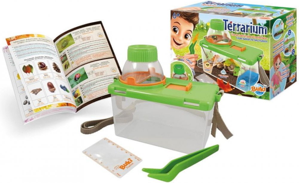 Pomocí pinzety vybavíte terárium kameny, rostlinami, kůrou a dlaším materiálem. Pak stačí do teráriua nastěhovat nové obyvatele a pozorovat jejich chování pomocí odnímatelné 6x lupy a pomocí 3x odstupňované lupy.