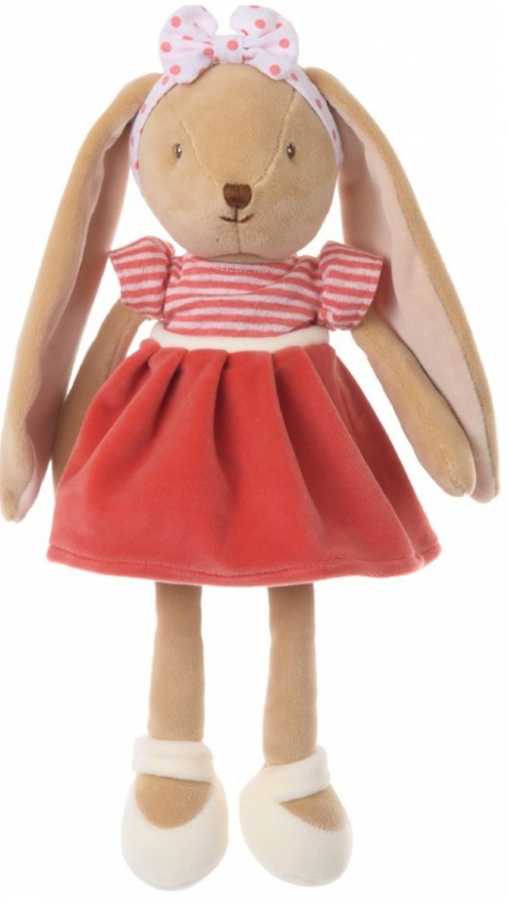 Seznamte se s jednou z králičích sester od značky Bukowski Design, rozkošnou plyšovou slečnou, která touží najít dvounohou kamarádku pro společné dobrodružství. Oblečená v červených šatech, pruhovaném topu a s dlouhými hebkými oušky láká k pomazlení. Šatičky je možné svléknout a vyměnit za vlastní outfit :-).