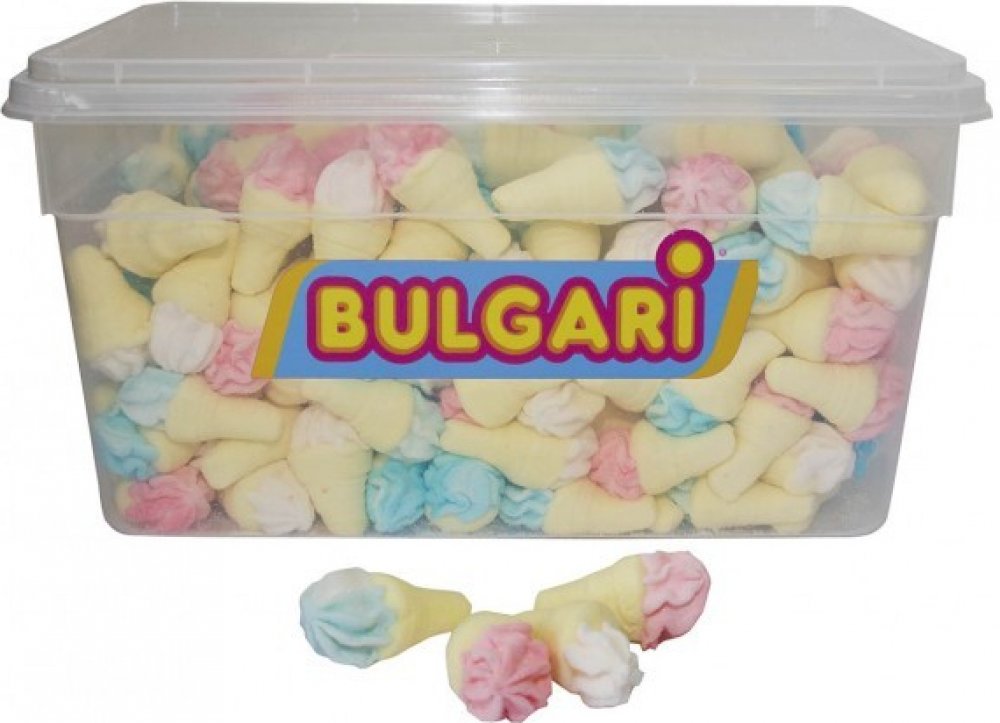 Mini zmrzlinky marshmallow 240 ks v praktické dóze. 240 ks v balení. 1 ks má 6 g. Složení: cukr, glukózo-fruktózový sirup, pitná voda, potravinářská želatina, aromata, barviva: kyselina karmínová, karmímy; barvící rostlinné výtažky: ze světlice barvířské, ze spiruliny; kyseliny: kyselina citronová; kukuřičný škrob. Výživové hodnoty na 100 g: Energie: 1615 kJ / 380 kcal • Tuky: 0g; z toho nasycené mastné kyseliny: 0 g • Sacharidy: 93 g; z toho cukry: 75 g • Bílkoviny: 2,5 g • Sůl: 0,10 g Výrobce: BULGARI AGOSTINO SRL, Itálie