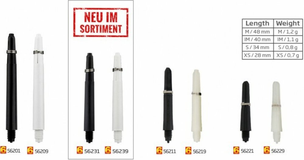 Klasické nylonové násadky v originální kvalitě, které jsou opratřeny pružinkami pro stažení letek. Vyrobeny ve třech délkách a dvou barvách. Praktické balení, které obsahuje 18 kusů násadek. Varianty: 56201, 56209, 56211, 56219, 56221, 56229.