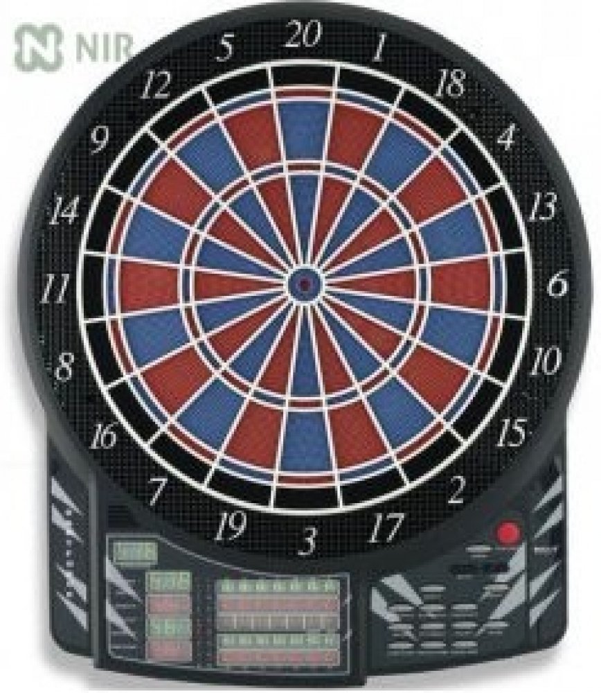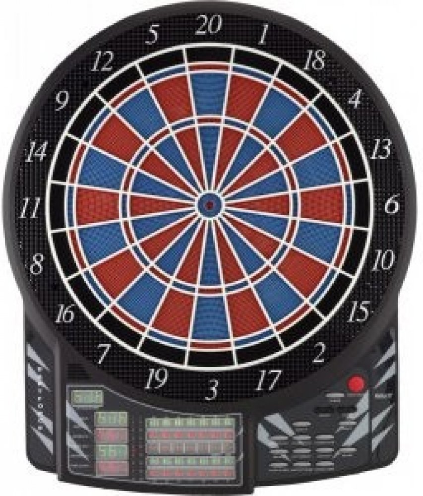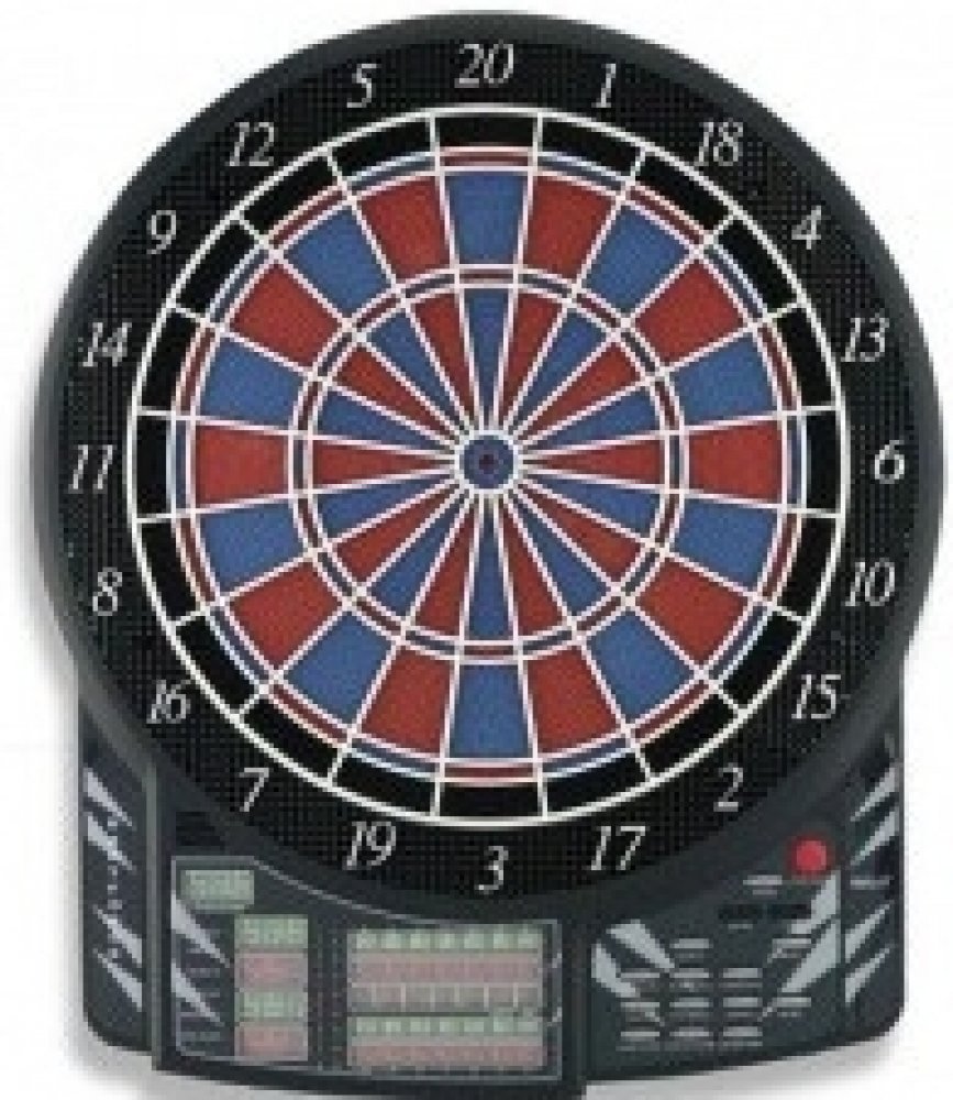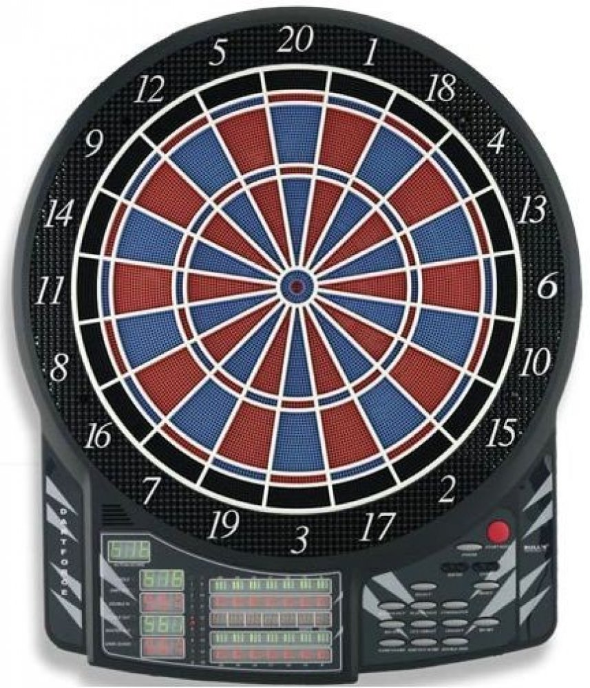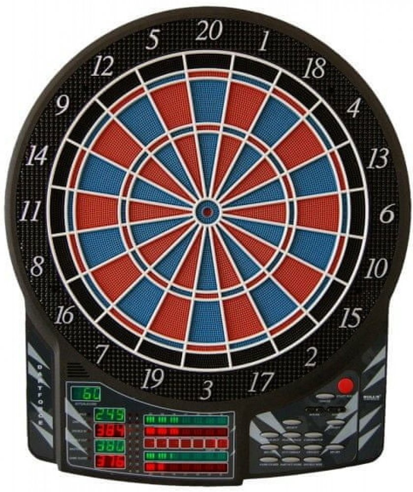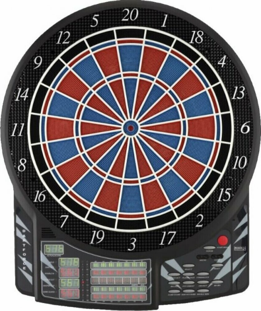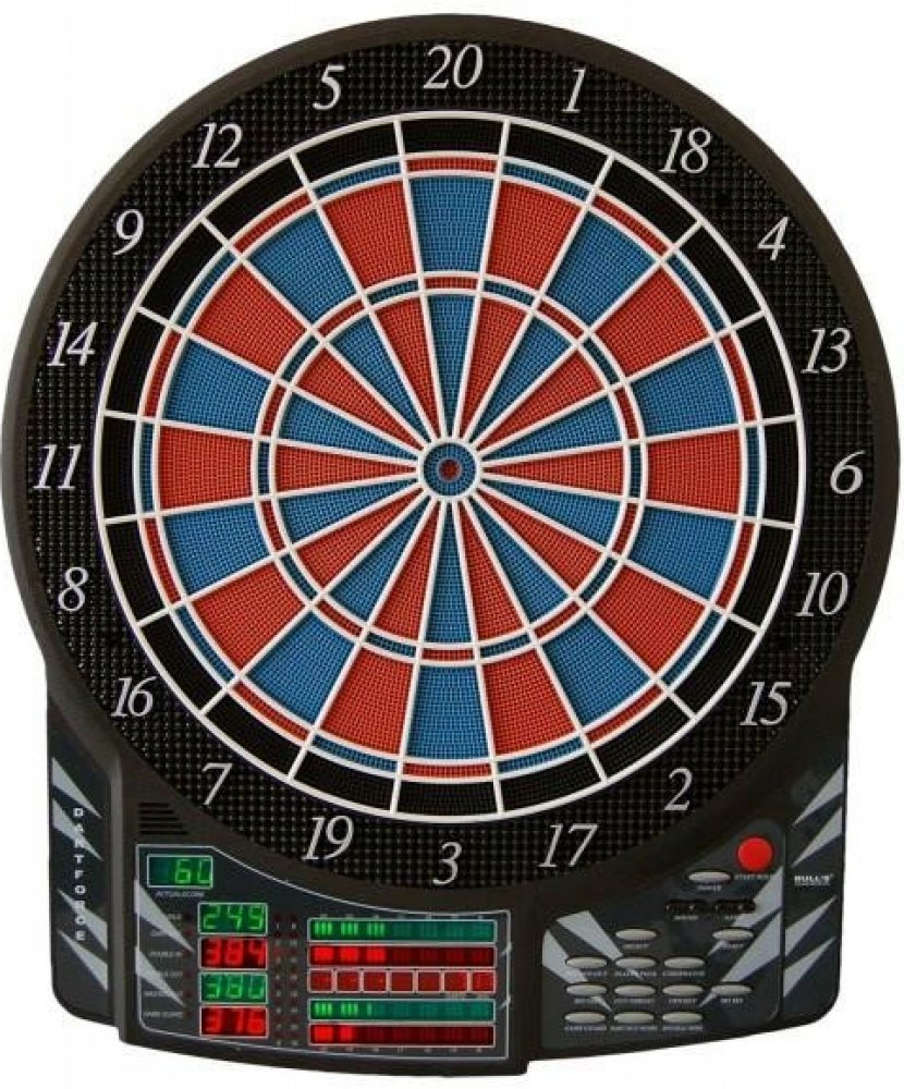 Bull"s Dartforce profesionální elektronický terč pro 1-16 hráčů a 2-8 týmů , 41 her a 140 variant s automatickým počítadlem. Dvouřadkový nástěnný, parametry double, triple. 10 LED displeje, široká zóna, která zachytává šipky mimo terč, nastavitelý zvuk i efekty. Terč má aktivní asfalt. Napájení terče je z AC adaptéru který je součástí balení.