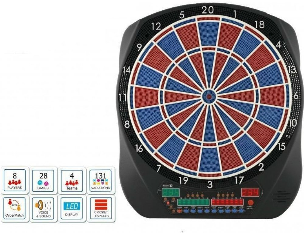 Terč disponuje automatickým vypínáním, které šetří energii a prodlužuje životnost terče. Dále má automatické počítadlo, takže hráči nemusí ručně skórovat, což zjednodušuje a zrychluje celou hru. Zvukové efekty jsou nastavitelné, což umožňuje hráčům přizpůsobit si zvuky podle svých preferencí. Kromě toho disponuje funkcí Double-In/Double-Out, která je ideální pro pokročilé hráče a zahrnuje také funkci Cyber-Match do úrovně 5.