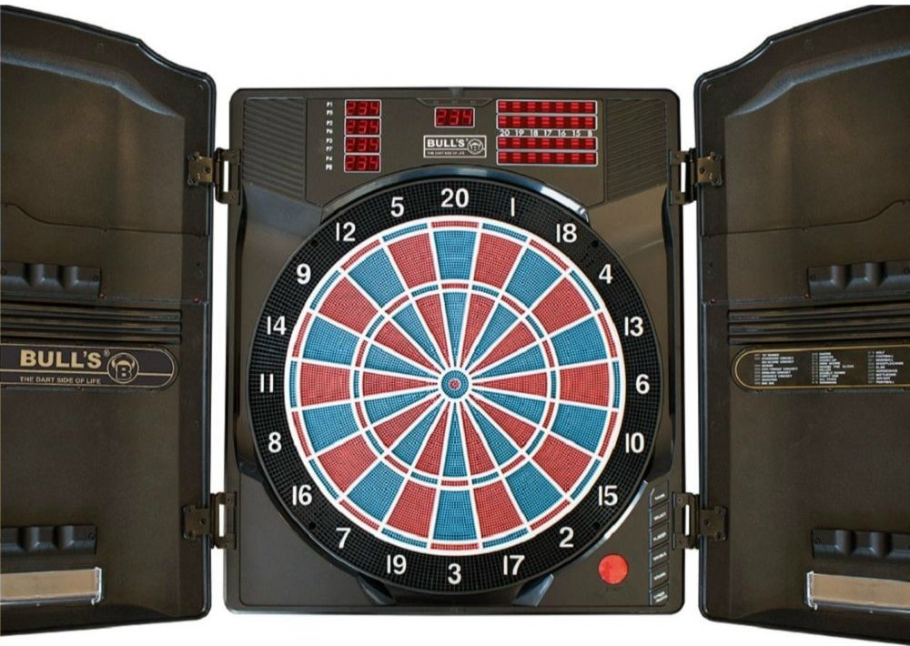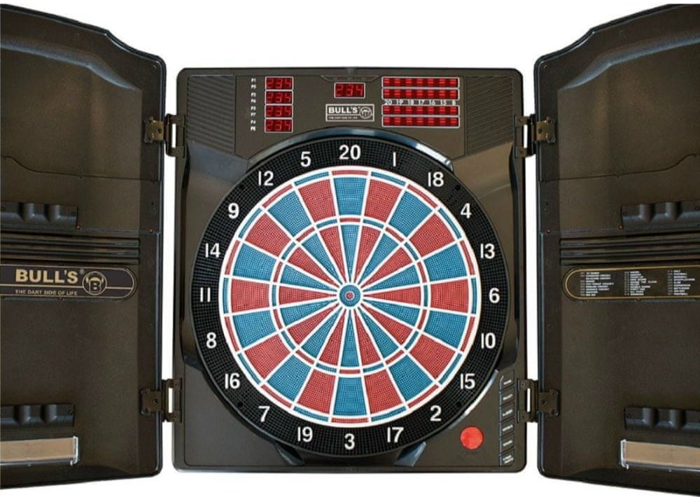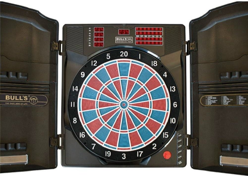 Elektronický kabinet terč s dvířky Bull's Master Score je poloprofesionální elektronický dvouřádkový terč pro zkušené hráče.