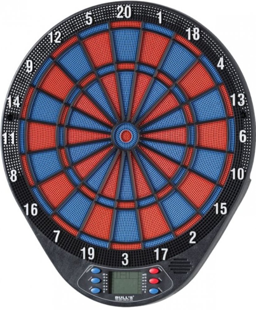 Elektronický třířádkový terč Bull's Matchpoint je moderní a atraktivní terč pro hru šipkami na baterie, které nejsou součástí dodávky. který je vybaven LED displejem, na kterém jsou zobrazovány údaje pro jedennoho hráče. Jeho vzhled je elegantní a sofistikovaný, což z něj dělá nejen funkční, ale také atraktivní doplněk pro domácí zábavu.Aby vaše zábava s terčem mohla pokračovat bez přerušení, je důležité mít dostatek hrotů. Doporučuji začít s menšími baleními různých typů hrotů, abyste mohli vyzkoušet, které se vám budou hodit nejvíce. Jakmile najdete ty pravé, můžete je zakoupit ve větším balení, což je cenově výhodnější a zajišťuje, že vaše hra bude moci pokračovat bez jakýchkoliv komplikací.Terč je navržen tak, aby byl vhodný pro hru od jednoho až po čtyři hráče, nebo od dvou do čtyř týmů. Díky tomu je vhodný jak pro individuální trénink, tak pro zábavu s přáteli či rodinou.Bull's Matchpoint nabízí celkem 21 her, včetně 65 různých variant. Mezi ně patří klasické hry jako 301 nebo 501, ale také mnoho dalších zajímavých her.Díky elektronickému systému je hra s tímto terčem pohodlná a snadná. Terč automaticky počítá skóre a ukazuje aktuální výsledky na jednomLED displeji. Terč je navíc vybaven zvukovými efekty, což přidává další rozměr zábavy a napětí k hře.Elektronický třířádkový terč Bull's Matchpoint je skvělým doplňkem pro každého nadšence šipek, který hledá moderní a funkční terč s mnoha herními možnostmi a atraktivním vzhledem.Podívejte se na perfektní video s ukázkou tohoto třířádkového terče na baterie a jeho ovládání některých her pro vaši lepší představu. Napájení je pomocí baterií (nejsou součástí balení).Balení obsahuje 6 ks šipek, náhradní hroty, a manuál.Výslovně upozorňujeme, že tento terč je určen pouze pro domácí použití, nikoli pro použití v restauracích, kavárnách, pivnicích, šipkových barech,, šipkových hernách, školách apod. a záruka tedy platí pouze pro domácí použití. Pro restaurace apod, jsou určeny profesionální terče - automaty.