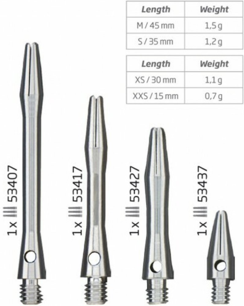 Násadky Bull´s Simplex jsou jedny z nejoblíbenějších Alu násadek. Aluminiové násadky ve čtyřech různých délkách pro rozdílné vlastnosti letu s obvyklým 2BA závitem. Varianty: 53407, 53417, 53427, 53437.