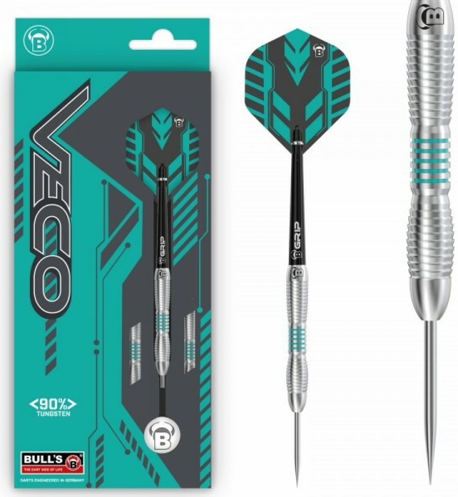 BULL'S Série Veco zaujme inovativní kombinací vysoce kvalitního materiálu a inovačního designu. S působivým 90% obsahem wolframu zaručují tyto šipky dokonalou rovnováhu a odolnost. Zvláštností všech šipek Veco je barevně odlišené vybrání pro úchop barelu, které umožňuje přesně reprodukovat úchop při každém hodu. To podporuje konstantní techniku házení. Sharkgrip - toto uchopení zajišťuje optimál...