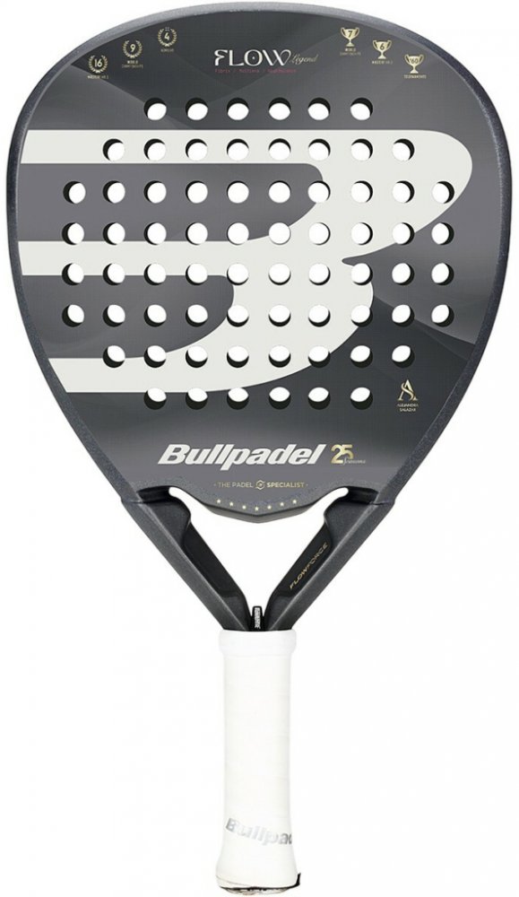 Bullpadel Flow Legend W 26 je padelová raketa (pálka) Alejandry Salazar – několikanásobné světové jedničky a jedné z největších osobností světového padelu. Tato edice s černozlatým designem vzdává poctu její kariéře a přináší stejnou kombinaci výkonu, kontroly a komfortu, kterou Alejandra využívá při hře na nejvyšší úrovni.