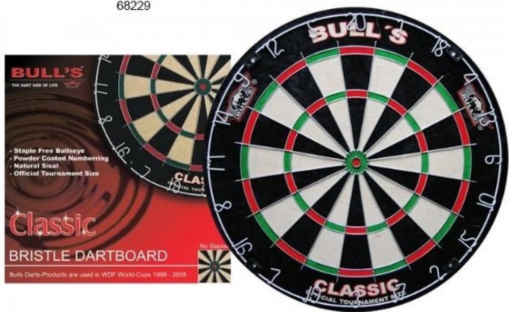 Kvalitní sisalový terč Bull´s Classic s kruhovým profilem drátu a příchytovými očky. Vhodný pro domácí potřebu. Oficiální míry ca. 45 x 4 cm a váha cca. 5 Kg.