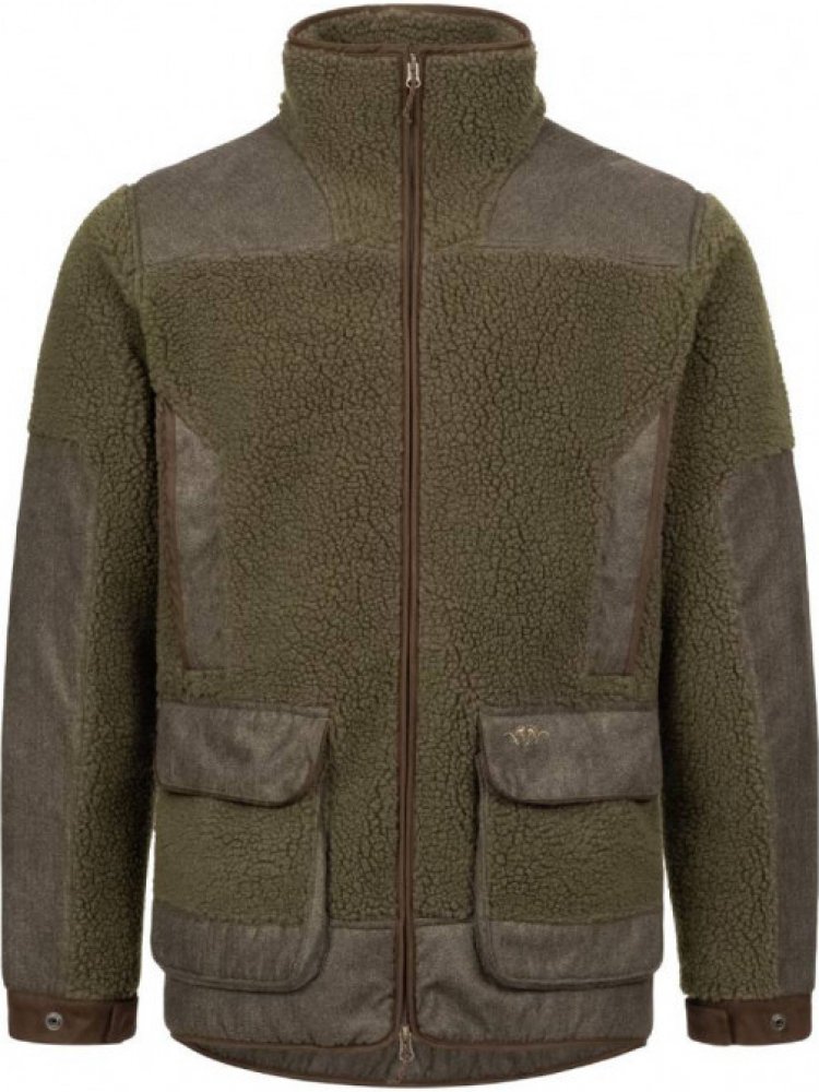 Lovecká bunda Blaser zelená - SHERPA FLEECEBunda je ušita z objemného Sherpa fleece, který připomíná ovčí vlnu. Na ramenou, horních rukávech a kapsách je použit exkluzivní Vintage materiál. Vpředu je vybavena dvěma horními kapsami na patenty a dvěma prostornými nakládanými kapsami s klopami na tiché patenty, uvnitř s pásy na patrony. Bundu zapnete dvoucestným zipem, podšívka je taftová s logy Arga...