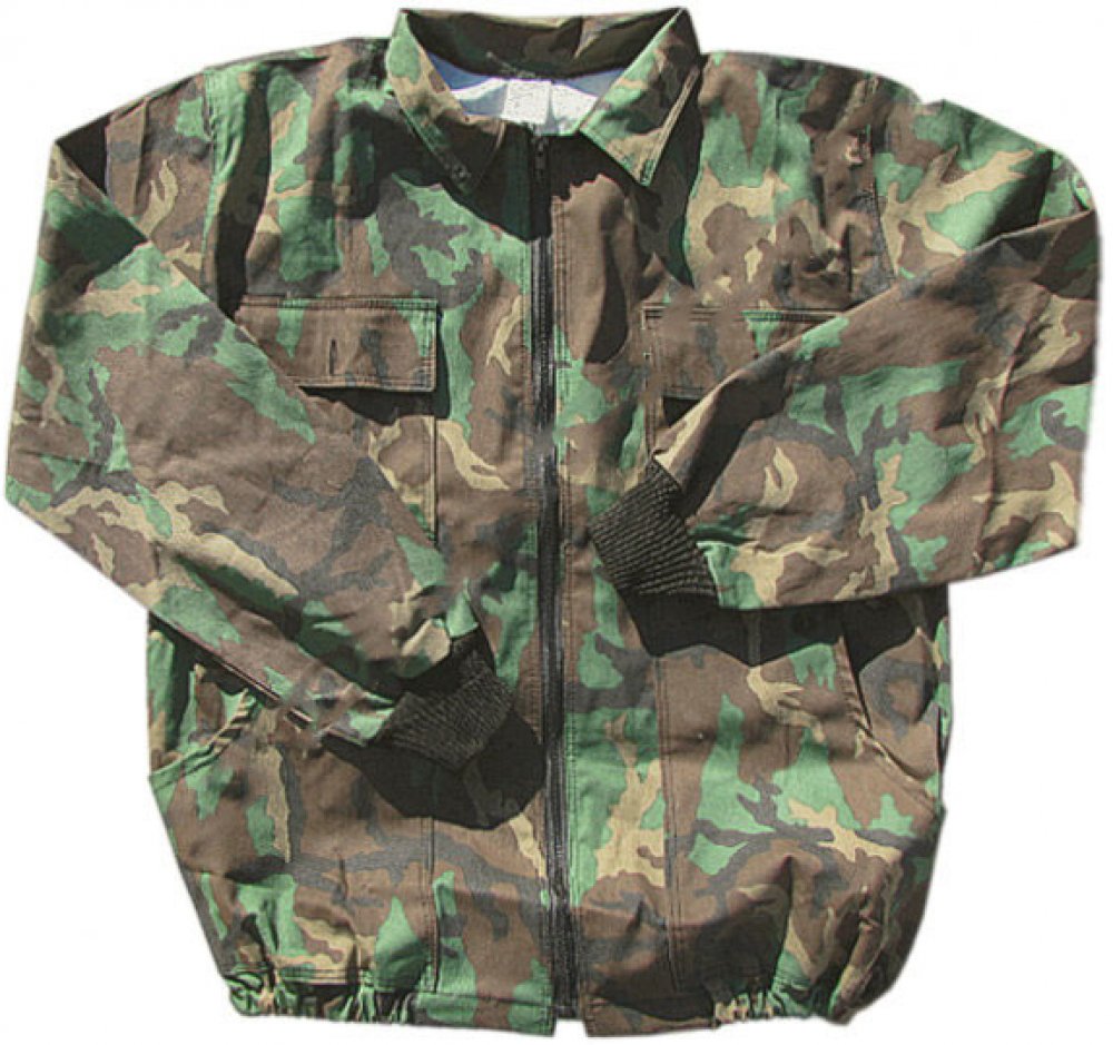 specifikace: jednoduchá maskáčová bunda bez podšívky s 2-mi předními velkými kapsami a 2-mi náprsenkových kapsami s patkami, zipové zapínání bundy, manžety na rukávech z elastického úpletu, guma v pase
