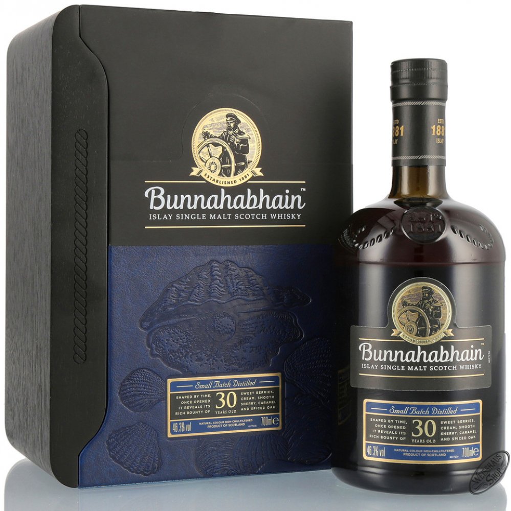 Tato úžasná whisky z palírny Bunnahabhain na ostrově Islay prošla 30 lety zrání, díky čemuž se její chuťový profil prohloubil a obohatil o tóny karamelu, dušených bobulí a kořeněného dubu. Díky pobytu v sudech po sherry můžete očekávat také vydatnou porci zralých švestek, svátečního koření a luxusní čokolády.