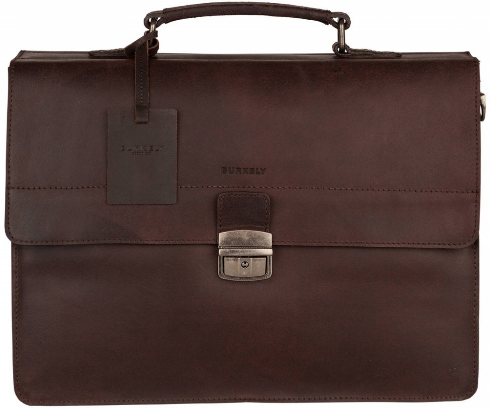 Vintage kožená pracovní aktovka holandské značky Burkely. Tato kožená pracovní aktovka z kolekce Vintage je vyrobena z lovecké kůže. Jedná se o charakteristickou a drsnou kůži, která dodává robustní vzhled. Kůže je pevná, ale pružná. Aktovka má nejenom parádní vzhled, ale je i velmi praktická a nabídne Vám tři samostatné oddíly, které jsou od sebe odděleny kapsami na zip. Dále uvnitř najdete otevřenou kapsičku na drobnosti, úchytky na psací potřeby a další kapsu na zip. Poslední kapsu najdete jak na přední (pod klopou) tak zadní straně tašky. Součástí tašky je odnímatelný a nastavitelný popruh přes rameno.