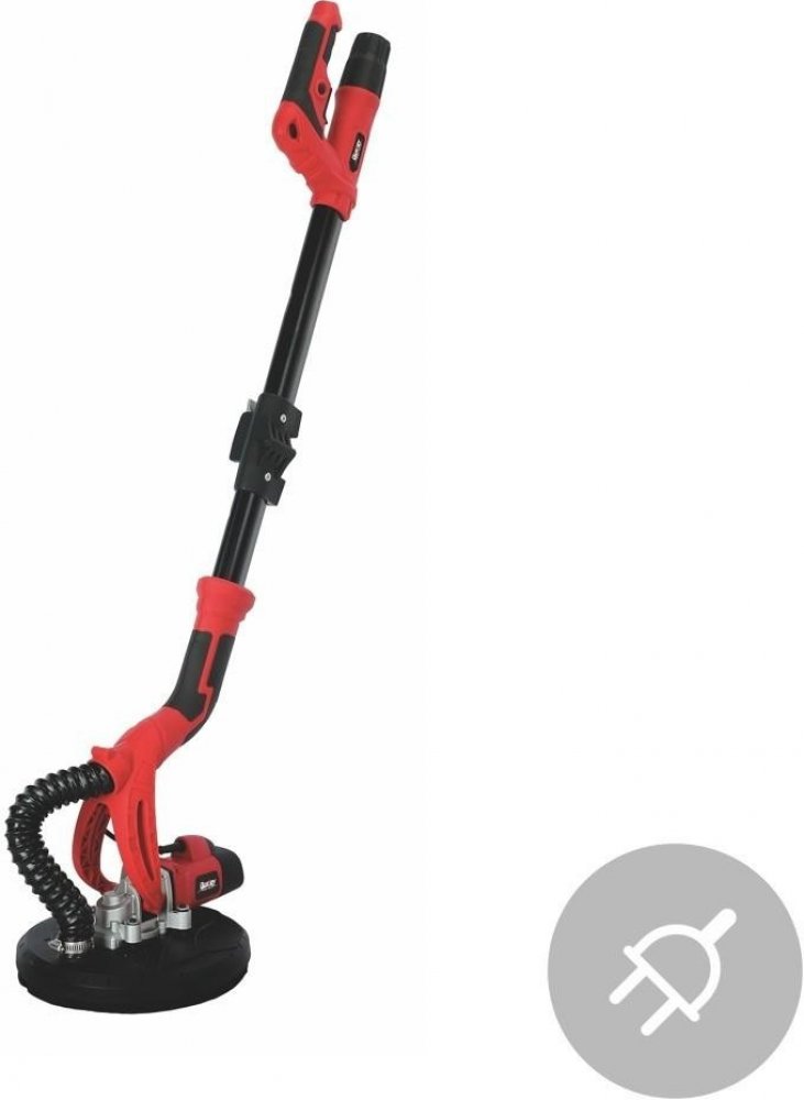 Elektrická bruska je vybavena silným motorem s příkonem 600 W. Snadno si poradí i s náročnější prací. Praktickým regulačním kolečkem je možné nastavovat rychlost od 600 do 1500 rpm. Výhodou této brusky je prodlužovací trubice, kterou si dokážete přizpůsobit podle potřeby. Pokud budete používat brusku na krátkou vzdálenost, prodlužovací trubici jednoduše zasunete. V případě, že chcete ošetřovat například podlahy, je možné prodlužovací trubici vysunout. Díky tomu bude práce s bruskou opravdu praktická, rychlá a jednoduchá, a nebudete se muset namáhat. Brusku stačí zapojit do elektrické sítě (230 V) a můžete začít pracovat. Vnitřní odsávací systém efektivně shromažďuje jemné prachové částice přiléhající ke stropu a zdí, čímž získáte dokonalý efekt extrakce prachu.