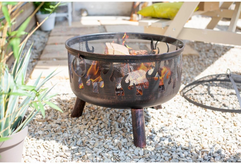 Užijte si příjemné a hřejivé hodiny u ohniště Wildfire, který svým dekorativním vzorem plamene skutečně upoutá pozornost. Ochranný kryt proti jiskrám zajišťuje bezpečnost a grilovací rošt, který je součástí dodávky, navíc umožňuje použití tohoto ohniště k přípravě pokrmů. Ohniště je určeno pouze pro venkovní použití. Nádobu na oheň nepoužívejte v uzavřených místnostech. Nepoužívejte ohniště na terasách nebo jiných hořlavých površích, jako je suchá tráva, piliny, listí nebo dekorativní kůra. Ujistěte se, že je ohniště umístěn alespoň 2 m od hořlavých předmětů, a to i na výšku. Toto ohniště je vhodné pouze pro domácí použití a nesmí být používáno pro komerční účely. Z bezpečnostních důvodů byste měli před použitím vždy zkontrolovat ohniště, zda není poškozený a závadný, a okamžitě jej opravit. Nikdy nenechávejte oheň bez dozoru. Při používání mohou vznikat odletující jiskry. Během provozu ohniště nepřemisťujte. Při manipulaci vždy používejte dodané bezpečnostní nástroje a žáruvzdorné rukavice. Provoz K hoření nepoužívejte benzín, minerální alkohol, kapaliny do zapalovačů, alkohol ani jiné chemikálie. Příliš rychlé zvýšení teploty může poškodit ohniště. Ohniště je vhodné pouze pro použití s neošetřeným dřevem, poleny nebo dřevěným uhlím. Připravte si stoh novin (zmačkané) a položte je na horní část ohniště. Na papír naskládejte jemné suché palivové dříví nebo podpal. Nepřetěžujte ohniště, stačí 1-2 větší kusy dřeva. Při přidávání materiálu na oheň používejte pouze žáruvzdorné rukavice a bezpečnostní nástroj, neboť nádoba na oheň je velmi horká. GrilováníPřed prvním grilováním je doporučeno ohniště zahřát a udržovat rozžhavené palivo po dobu nejméně 30 minut. Negrilujte, dokud se na palivu neobjeví povlak popela. Je-li nutné doplnit palivo, vždy používejte žáruvzdorné rukavice a dodaný ruční nástroj k sejmutí grilovacího roštu. Po dokončení grilování nevyjímejte grilovací rošt, dokud ohniště zcela nevychladne. Hašení Nechte oheň pomalu uhasit nebo jej zasypte pískem. K hašení nepoužívejte vodu, protože by mohla ohniště poškodit. Skladování Jelikož je tento model vyroben z oceli, povrch stárne a vzniká rez, pokud je ohniště umístěno venku. To se dá očekávat a nemá to vliv funkčnost a nejedná se o závadu produktu. Potřete ohniště naolejovaným hadříkem, aby se zredukoval povlak rzi. Ohniště je možné ponechat venku po celý rok, pokud je použit kryt. Ohniště zakrývejte krytem až po vychladnutí.