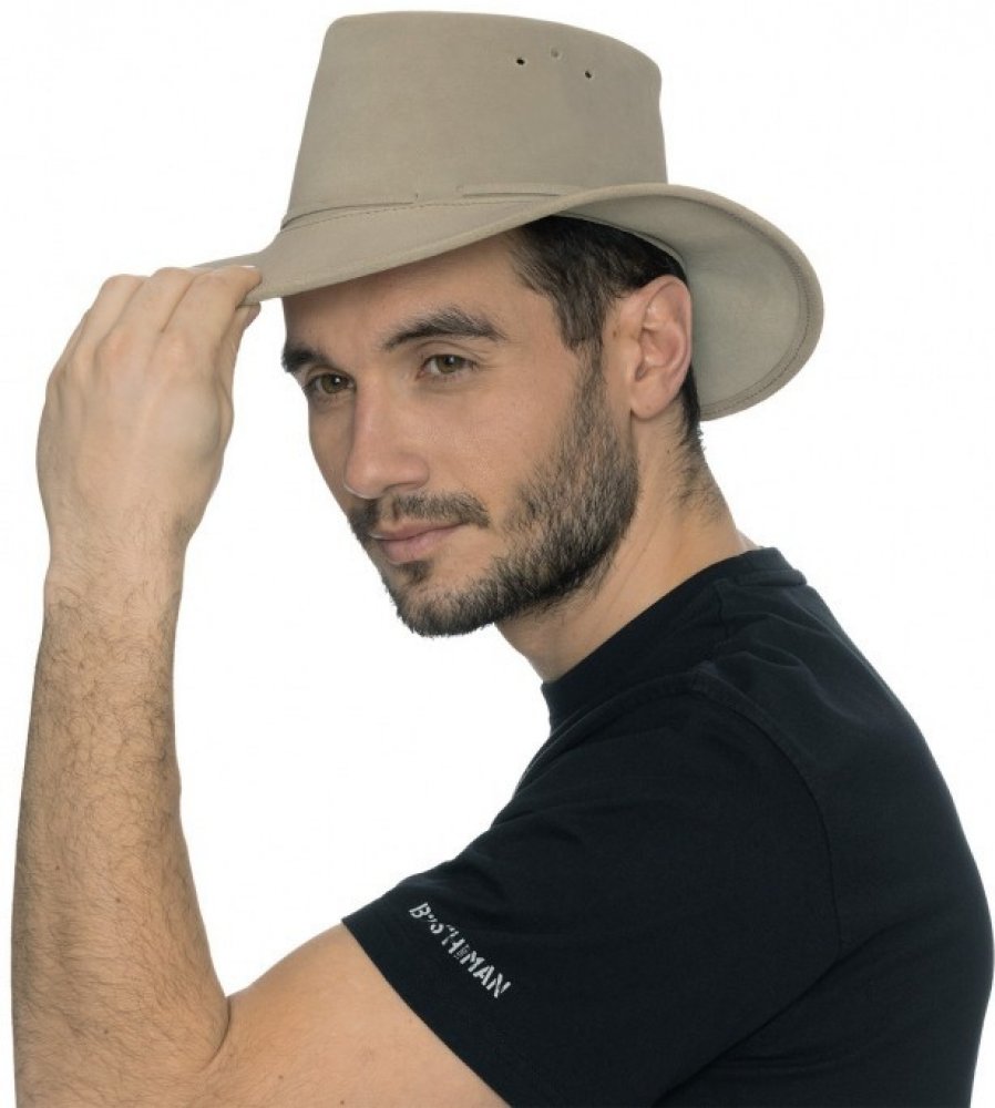 Srdcovou záležitostí nejen pro bushmany, ale i jejich křehčí polovičky, je kožený klobouk ASHEN. Jako už tradičně je i tento klobouk ručně vyráběný v jižní Africe. Všechny nedokonalosti, které na něm najdeš, jsou jen vzácnou pečetí, kterou na něj otiskly lidské dlaně. Ctí tradiční postupy ruční výroby klobouků strážců jihoafrických národních parků, ale vzít ho můžeš kamkoli. Na klobouku najdeš proplétanou koženou šňůrku a odvětrávací otvory. Kůže je prvotřídně opracovaná a její jemnost tě překvapí. Stejně tak i vypalované logo BUSHMAN, které spolu s jemným odstínem kůže vytváří zajímavý kontrast.