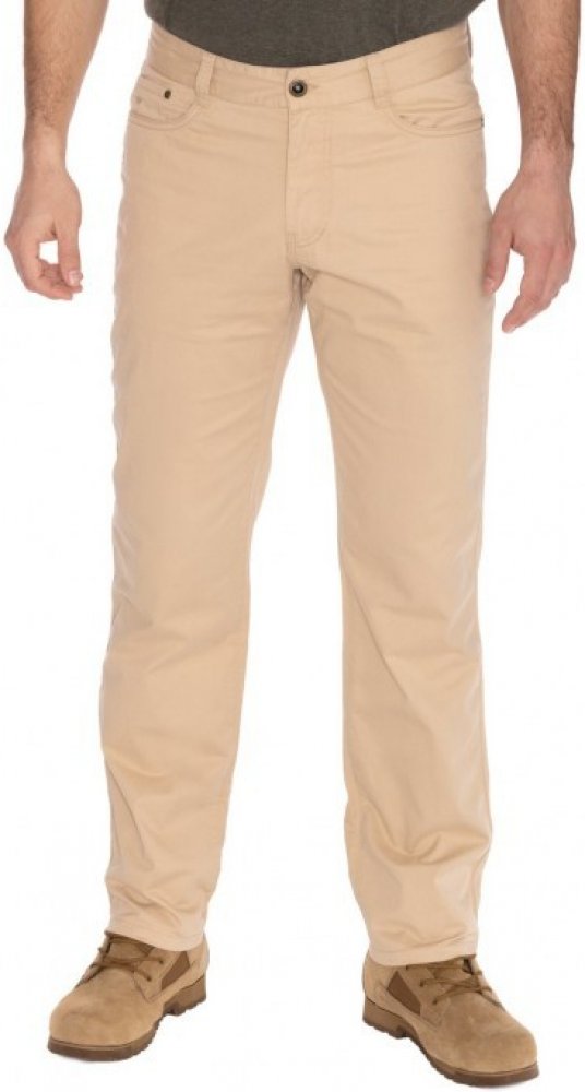 Kalhoty, které můžeš vzít na výlet i do práce, dál nehledej. Kalhoty STENLEY jeansového střihu v keprové vazbě mají pobroušený povrch a jsou tvořeny z 98 % bavlnou a ze 2 % poddajným elastanem. Přední část je doplněna o klasické jeansové kapsy včetně hodinkové kapsičky s drobnou brandovou výšivkou. Nakládané kapsy na zadním díle jsou zdobené dekorativním prošitím a na zadní části, konkrétně ve švu zadního sedla, se skrývá ještě jedna malá kapsička. Kalhoty jsme enzymaticky oprali, tudíž jsou odolnější například vůči žmolkovatění. Gramáž: 220 g/m2 * Kalhoty STENLEY jsou v pase z každé strany cca o 1,5 cm užší, než jsi u kalhot BUSHMAN zvyklý. Pokud preferuješ méně obepnutý pas, vol raději kalhoty o velikost větší.