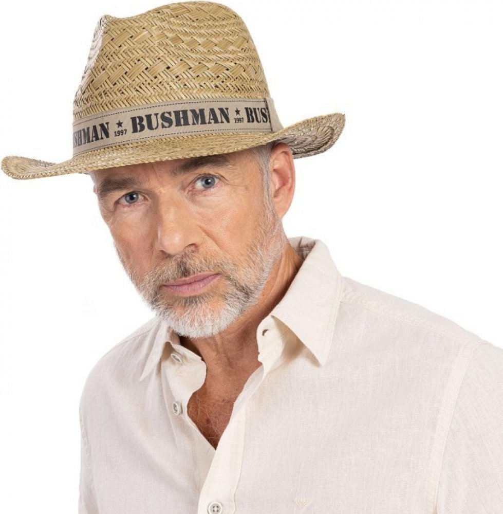 Bushmanská klasika v inovovaném provedení - nový bushmanský klobouk s obrandovanou textilní páskou udělá radost všem našim věrným klasikům. Vylepšili jsme mateiál - tentokrát jsme použili pevnější a trvanlivější rýžovou slámu. Užij si léto, ať jsi kdekol! Charakteristické prvky: Parádní UNI slamák zaujme na první dobrou, a to především výraznou páskou BUSHMAN. Udělá parádu, ale především ochrání před sluncem. A navíc dost vydrží - je totiž vyroben z pevné rýžové slámy...